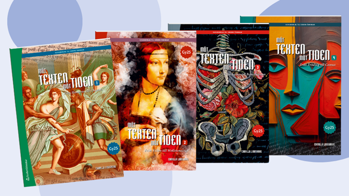 Ett centralt kunskapsområde i ämnet svenska är litteraturhistoria, som i ämnesplanen för Gy25 har fått större vikt än tidigare. I Möt texten – möt tiden serveras färdiga lektionsupplägg till några av litteraturhistoriens största berättelser – från antiken till idag. Allt som behövs är inkluderat: textutdrag, epoköversikter, övningar, uppsatsämnen, ordlistor, facit m.m. Läromedlet är utformat för samtliga tre nivåer i svenska och består av fyra elevböcker med lärarhandledningar.