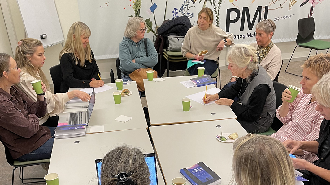 Bild från bokcirkel arrangerad av Malmö stad. Deltagarna pratar om att de har blivit stärkta av att arbeta med estetik och drama, de har fått mod och argument främst från den teoretiska delen.