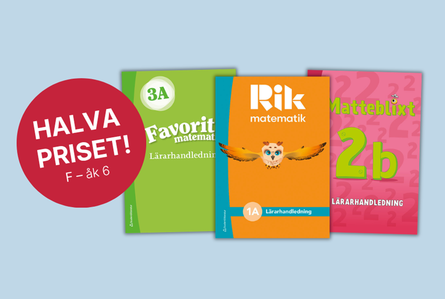 Just nu får du som undervisar i matematik i F – åk 6 våra lärarpaket till halva priset. Ta chansen att investera i ett lärarpaket och få en komplett pedagogisk lösning – för alla lärare förtjänar en riktigt bra verktygslåda.