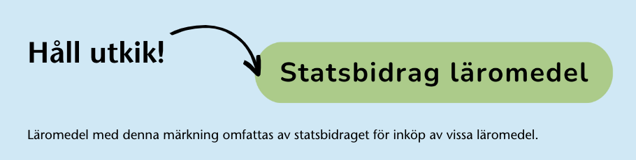 Håll utkik efter den gröna symbolen "Statsbidrag läromedel", som vi har märkt upp alla läromedel som ingår i Statsbidrag för inköp av läroböcker och lärarhandledningar 2025.
