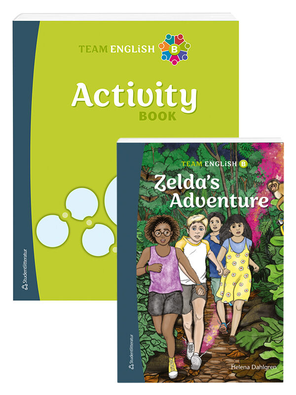 Team English är ett nytt basläromedel för åk 4-6 med en riktig skönlitterär bok och sju spännande teman där eleverna läser och utvecklar sina engelskkunskaper tillsammans! I Team English B Elevpaket ingår läseboken Zelda’s Adventure i originalversion med digitalt läromedel och en Activity Book. Team English huvudfokus är den gemensamma läsupplevelsen och tematiskt arbete som genomsyras av kooperativt lärande. Med lockande fantasyberättelser på två olika nivåer, och en Activity Book som verkligen aktiverar eleverna i alla färdigheter, lär sig eleverna mer engelska tillsammans. Läsebok – Zelda’s Adventure Zelda’s Adventure är en fristående fortsättning på Sam’s Secret. Den här gången tar äventyret plats på de engelskstalande öarna Trinidad & Tobago, där Zelda står i centrum. I boken tar de fyra vännerna sig an ett nytt spännande mysterium med familjehemligheter och illegal handel med vilda djur. Boken är skriven av Helena Dahlgren, känd för sina fängslande ungdomsromaner, och kombinerar en engagerande handling med karaktärer som eleverna kan relatera till. Precis som vid tittandet på en spännande tv-serie skapar berättelsen en stark vilja hos eleverna att fortsätta läsa och ta reda på vad som händer härnäst. Boken är rikt illustrerad med engagerande bilder som stödjer elevernas läsförståelse och gör berättelsen mer levande. Dessutom finns ordlistor längst ner på sidan som underlättar läsningen och stöttar inlärningen av nya fraser och uttryck. Eleverna läser 21 kapitel fördelade på 7 units, där varje unit avslutas med ett hörförståelsekapitel utifrån en stor bild som håller elevernas nyfikenhet vid liv från början till slut. Digitalt läromedel – Zelda’s Adventure I det digitala läromedlet som medföljer finns ljud, filmer och övningar kopplade till läsebokens berättelse. Där ingår: • Read & Listen – inläsningar utav hela berättelsen - både originalet och den lättlästa versionen • Words – ordövningar på de glosor som förekommer i berättelsen • Listen & Answer – hörförståelsefrågor till berättelsen • Read & Answer – läsförståelsefrågor till berättelsen • Peer readers – korta filmer där läskompisar, som redan har läst berättelsen, delar med sig av sina tankar, frågor och tips och agerar som läsande förebilder • Speak & Write – individuella uppdrag kopplade till läsningen som eleverna får lösa antingen skriftligt eller muntligt Fler uppgifter till boken, både kooperativa och för enskilt arbete, finns också i lärarpaketet. Activity Book I Activity Book finns texter för läsförståelse och hörförståelse, uppgifter för att tala och skriva samt grammatik- och ordkunskapsträning. I boken finns sju teman och varje tema handlar om en fiktiv huvudperson från the UK vilket ger eleven värdefulla realiakunskaper. Enskilt arbete varvas med kooperativt lärande i par, grupp eller klass där eleverna lär tillsammans och av varandra. Särskilt tyngd läggs vid talövningarna och att få alla elever att våga tala. Här är det kooperativa arbetet nyckeln till att eleverna får mycket taltid, stöd av uppgiften och de andra eleverna samt att de får prata i mindre grupper. Varje tema leder upp till en avslutande skrivuppgift som alla elever kan klara av. Temana och innehållet är i linje med det centrala innehållet för Lgr22 och tas också upp i läseboken Zelda’s Adventure. De sju teman som finns i Activity Book B är: • Weather & Seasons (Edinburgh, Scotland) • Nature & Animals (Inverness, Scotland) • Crime (Cardiff, Wales) • Sports (Birmingham, England) • Music (Liverpool, England) • Tourism & Traveling (London, England) • Myths & Legends (Belfast, Northern Ireland) Författaren till Activity Book är läraren Melissa Nilsson från Philadelphia som idag bor och undervisar i Sverige men har också studerat i Storbritannien. Activity Book B är skriven på brittisk engelska och eleverna får via de sju temana träffa sju fiktiva karaktärer och göra en resa genom sju olika regioner i the UK. Elevpaketets Activity book är en förbrukningsbok som eleverna skriver och ritar i. Den kan också köpas separat i 10-pack. Kooperativt lärande som metod Namnet Team English syftar på att läromedelsserien genomsyras av kooperativt lärande och laginsatser. Kooperativt lärande som metod är väl spridd i de svenska skolorna och har bevisats ha positiva effekter för såväl lärandet som motivation och inkludering. De flesta övningar i serien är upplagda så att eleverna får lära tillsammans och av varandra i par, grupp eller helklass. Bakgrundsinformation kring den kooperativa metoden samt allt extra underlag som behövs för de kooperativa övningarna ingår i lärarpaketet. Kooperativa uppgifter, grammatik- och ordträning inom sju olika teman finns i Team English B Activity Book. Pedagogisk flexibilitet Med Team English kan läraren välja olika sätt arbeta med läromedlet. Läsningen och arbetet med den skönlitterära boken kan varvas med tematiskt arbete i Activity Book. Antingen under en och samma lektion eller så kan veckans lektioner fördelas mellan dessa två. Det är också möjligt att arbeta med läseboken under en intensiv läsperiod så att eleverna får hänge sig åt fantasyberättelsens handling och ”sträckläsa” den eller låta ett tema från Activity Book uppta en egen längre period. Zelda’s Adventure – två versioner/nivåer I det här elevpaketet ingår originalversionen av Zelda’s Adventure. Den riktar sig till elever med utvecklade eller fördjupade muntliga engelskkunskaper, men som behöver träna på läsning, ordförråd och den skriftliga biten. Boken är skriven som en äkta kapitelbok, med rikliga detaljer och beskrivningar, vilket motiverar elever som har förkunskaper och förståelse för engelska, exempelvis från fritidsengelska. Den lättlästa versionen nås i det digitala läromed