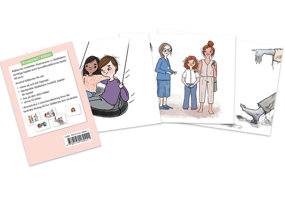 – väck läslusten redan från start I Krumelurkul får vi följa vännerna Otis och Luna som bor i samma hus, Otis på första våningen och Luna på nionde. De har varit kompisar sedan de var små. Torsten Bengtssons underfundiga texter förvandlar vardagliga händelser till spännande äventyr med mycket värme och stor igenkänning. Krumelurkul 2 Bildkort innehåller illustrationer till samtliga kapitel i läseboken samt illustrationer med huvudkaraktärerna Otis och Luna, deras familjer, majssnoken Maja, läraren Åsa, grannen Maria och hennes hund Hero. Korten ger många möjligheter till att exempelvis: • träna på ord och begrepp • återberätta läsebokens innehåll, kapitel för kapitel • öva på den röda tråden • skriva till bilder. I Krumelurkul 2 Lärarhandledning finns fler konkreta förslag till hur bildkorten kan användas.