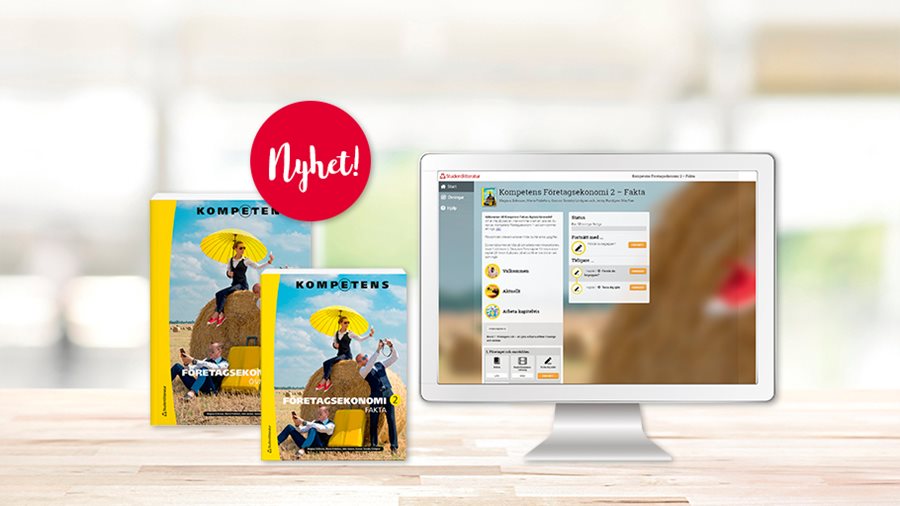 Kompetens Företagsekonomi 2 fortsätter i samma omtyckta stil som Kompetens Företagsekonomi 1. Även här är utvecklandet av färdigheter i form av kompetenser en röd tråd genom läromedlets alla delar. I detta läromedel presenteras företagandet utifrån ett mer globalt perspektiv, med kopplingar till hållbarhetsfrågorna. Eleverna får arbeta vidare med att utveckla sina kompetenser i budgetering och kalkylering, ledarskap och organisation, marknadsföring, bokföring och bokslut samt analys m.m. De kommer också att få möta längre redovisningscase. Hela läromedlet genomsyras av en nära koppling till verkligheten och till praktiskt entreprenörskap – som stöd inför det framtida yrkeslivet, egna företagandet eller UF-företagande. Det mycket fylliga innehållet erbjuder bredd, fördjupning och repetition, vilket ger stora möjligheter att arbeta flexibelt med läromedlet. ELEVPAKETET – DIGITALT LÄROMEDEL OCH TRYCKT BOK I Kompetens Företagsekonomi 2 Övningar får eleverna möjlighet att tillämpa kunskaperna från faktaboken – och arbeta vidare med sina kompetenser. Elevpaketet består av en tryckt bok och ett digitalt läromedel. Att arbeta både med papper och digitalt – s.k. blended learning – underlättar och förstärker lärandet. I övningsboken kan eleverna på olika sätt arbeta vidare med att befästa och tillämpa sina nya kunskaper och kompetenser. Uppgifterna är av varierande typ och svårighetsgrad för att alla elever ska ha förutsättningar att nå kursmålen. De elever som har kommit lite längre får fler utmaningar. När eleverna är färdiga med ett kapitel är det dags att checka ut och stämma av vad de har lärt sig och vilka kompetenser som har tränats. DET DIGITALA LÄROMEDLET Den interaktiva övningsboken är inläst med autentiskt tal och textföljning. För elever med läs- och skrivsvårigheter är detta ett värdefullt hjälpmedel, liksom för elever med andra modersmål än svenska.   Interaktiva uppgifter, genomgångar, digital ämnesordlista, självvärderingar efter varje kapitel samt test skapar stora möjligheter för eleverna att arbeta individuellt och självständigt. • Interaktiv version av boken, inläst med autentiskt tal och textföljning • Interaktiva uppgifter • Genomgångar • Digital ämnesordlista • Självvärderingar • Test Det digitala läromedlet kan användas på dator, surfplatta och till stor del i mobil. I det digitala läromedlet kan eleverna söka i innehållet. De kan också göra egna anteckningar och markera viktiga stycken i texten. Anteckningarna sparas automatiskt och kan enkelt samlas ihop och skrivas ut. Kompetens Företagsekonomi 2 Övningar finns även som digital elevlicens och digital klasslicens.