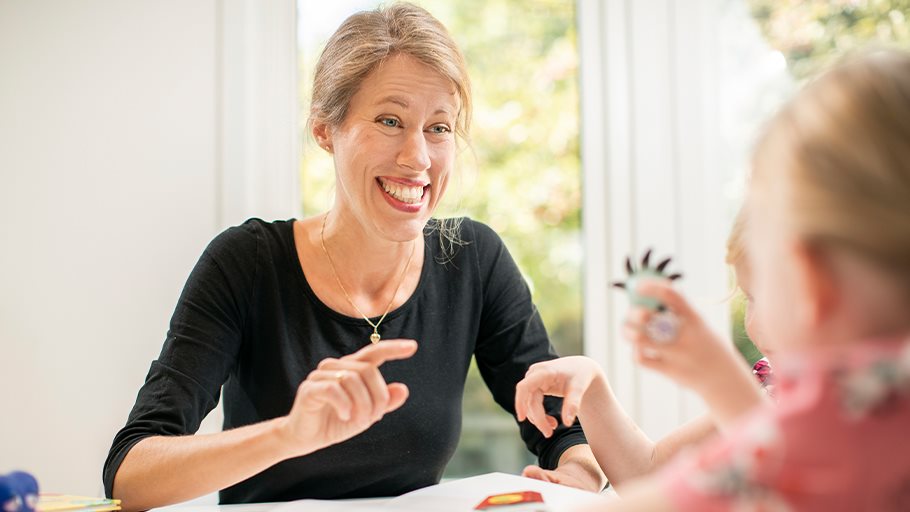 "Att bygga in språkträning i leken är ett enkelt sätt att stimulera. Jag brukade säga ’säg leka, leka, leka, så kittlar jag dig’ till min dotter som behövde träna på att uttala ’L’."