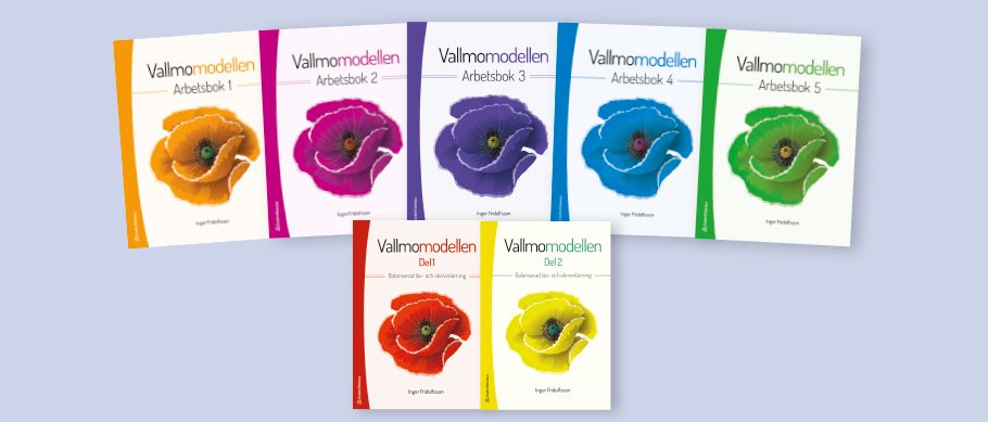 – Vallmomodellen utgår från phonics, det vill säga ljudningsmetoden där målet är att eleverna ska bli säkra på ljudande läsning.Tanken med arbetsböckerna är att eleverna självständigt ska kunna färdighetsträna. Eleverna kan arbeta i sin egen takt och boken kan påbörjas vid olika tidpunkter under läsåret, beroende på elevens förkunskaper. Övningarna har en tydlig struktur med en långsam progression och med många repetitioner. Tack vare den tydliga strukturen ges eleven möjlighet att lyckas, något som bidrar till att självförtroendet stärks.