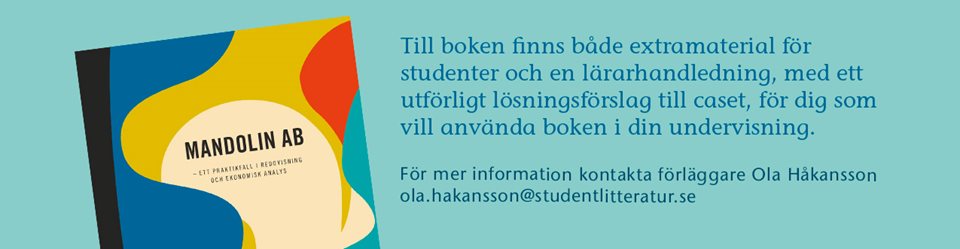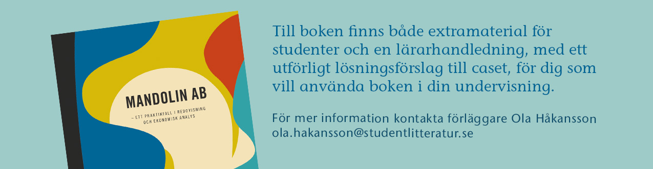 Mandolin AB är ett praktikfall i bokföring, bokslut och ekonomisk analys. I praktikfallet ingår att sköta den löpande bokföringen, ta fram bokslut ...