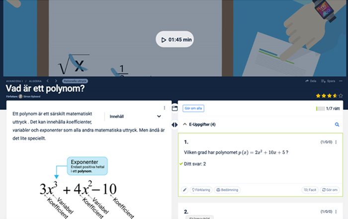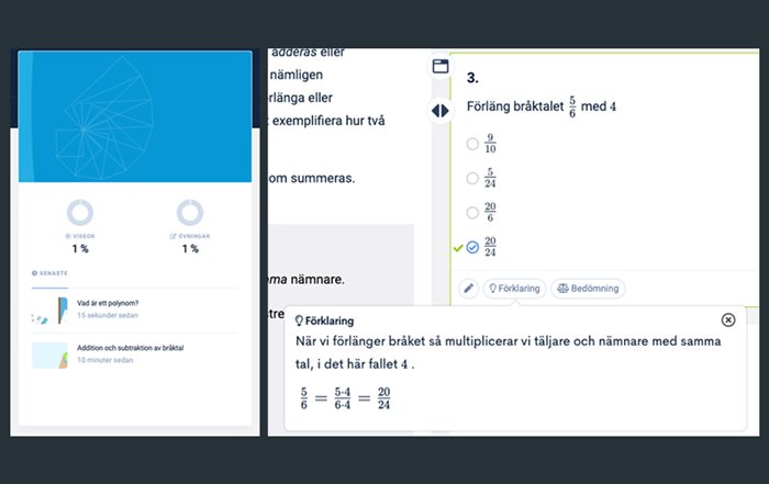 Innehållet kompletteras med förklaringsrutor som kan klickas fram. Studenten kan enkelt följa sin process med en så kallad ”progress bar” som visar de avklarade uppgifterna.