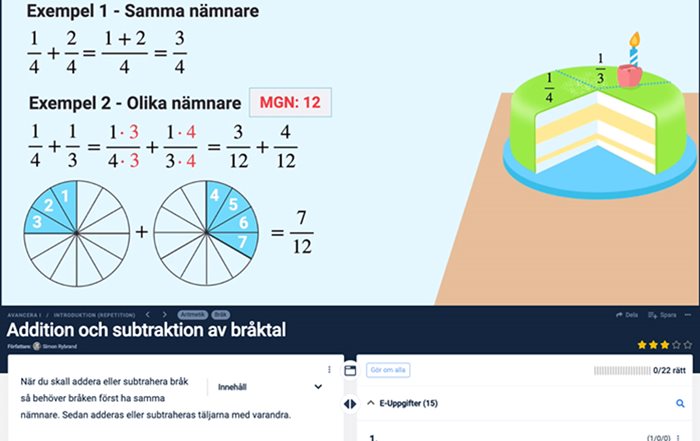 Ett utdrag från filmen om addition och subtraktion av bråktal i Avancera I med Eddler.