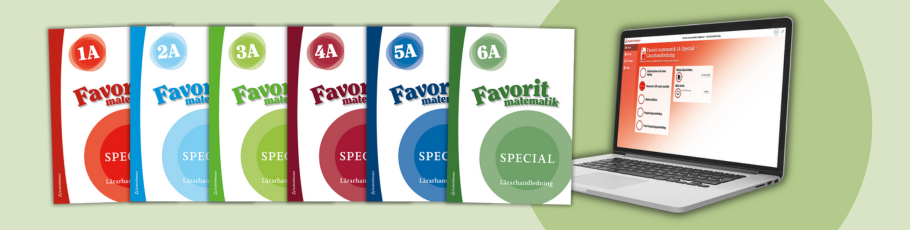 För dig som är speciallärare eller specialpedagog finns Favorit matematik Special med välvalda fokusområden för specialundervisning i anslutning till varje kapitel i elevboken Favorit matematik.