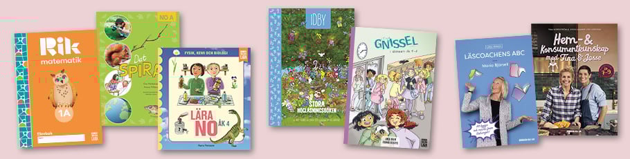 Elevböckerna är indelade i olika teman anpassade efter årskurs och utifrån läroplanens innehåll.