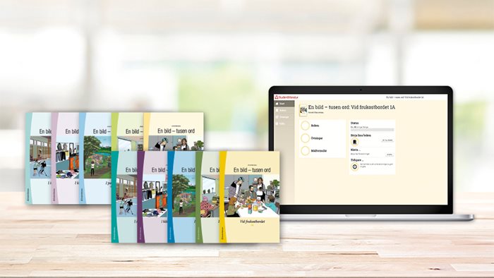 En bild − tusen ord erbjuder noggrant ihopsatta övningar som med bilder som utgångspunkt fokuserar på ord och begrepp, grammatik och muntlig aktivitet.