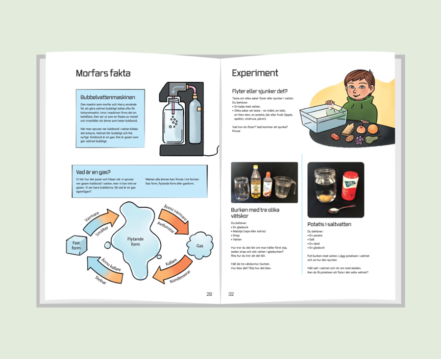 Börja lektionen med gemensam läsning och avsluta med ett enkelt experiment! Harryböckerna är inspirerande bilderböcker med naturvetenskapligt innehåll. Det händer alltid något spännande när Harry träffar sin lekfulla morfar som älskar att experimentera. Böckerna väcker nyfikenhet och uppmuntrar till vidare samtal och gemensamt utforskande. Berättelserna om Harry ger en lekfull ingång till lärande och experimenterande i naturvetenskap. I slutet av böckerna finns fakta och tips på experiment att göra tillsammans.
