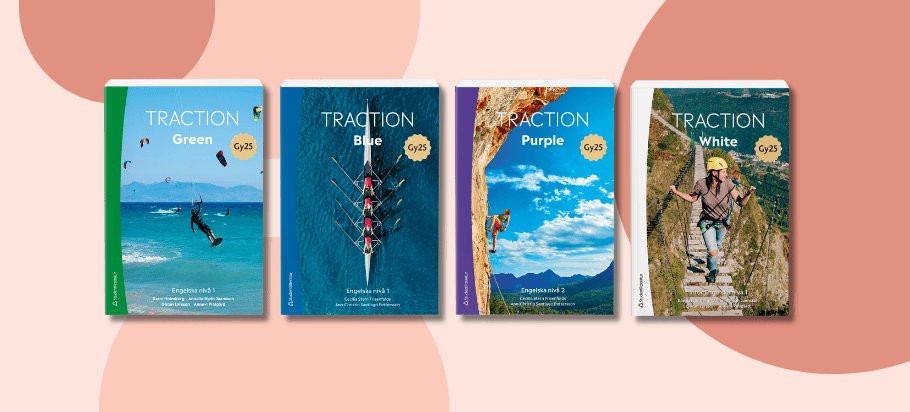 Traction är en läromedelsserie i engelska som täcker nivå 1 och 2 för både högskoleförberedande och yrkesförberedande program. Serien är framtagen för att vara tydlig, lätt att följa och inspirerande för eleverna. Varje bok har en enhetlig struktur där engagerade texter kombineras med ett omfattande övningsmaterial. Här tränas läsförståelse, kommunikation och resonemang, samtidigt som eleverna får stöd i att utveckla sina språkliga färdigheter.